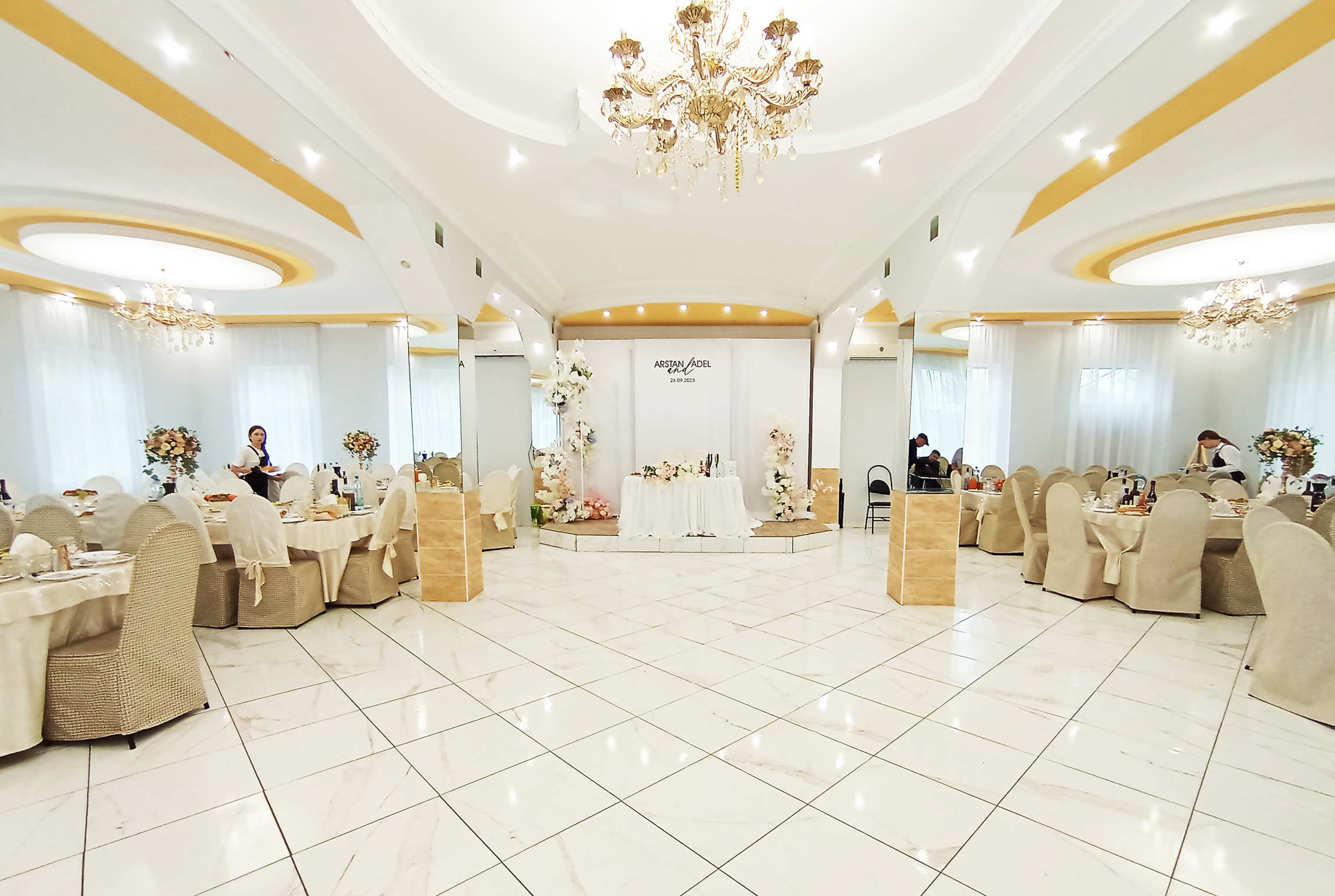 Великолепное впечатление от торжества усиливается благодаря стильному интерьеру зала, который был создан в духе ненавязчивой роскоши, ведь настоящий праздник должен быть не только вкусным, но ещё и красивым.